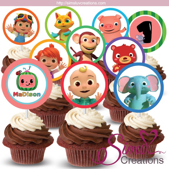 Cocomelon Birthday Party Personalized Cupcake Topper Digital Only Jolly Owl Designs