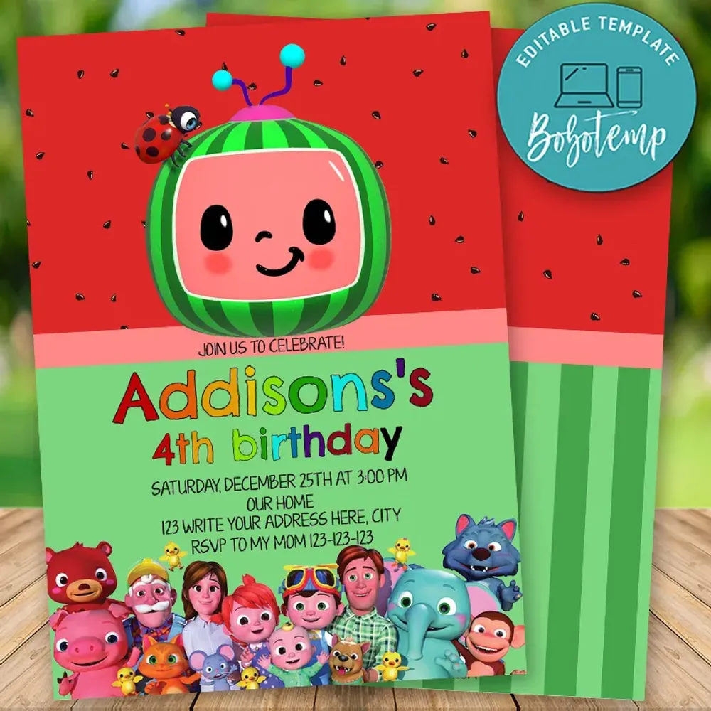 Editable Cocomelon Birthday Invitations Instant Download Bobotemp