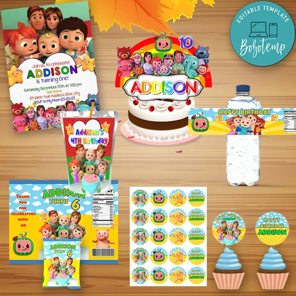 Personalized Cocomelon Birthday Party Decoration Package Digital Kit Jolly Owl Designs