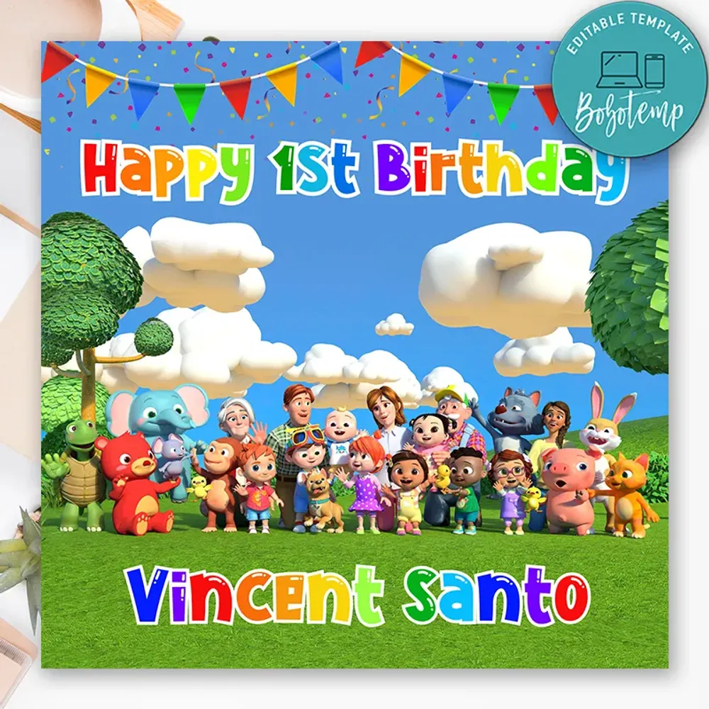 Cocomelon Happy Birthday Party Banner Digital Printable Jolly Owl Designs